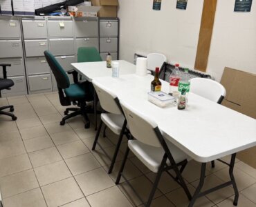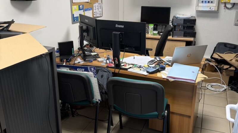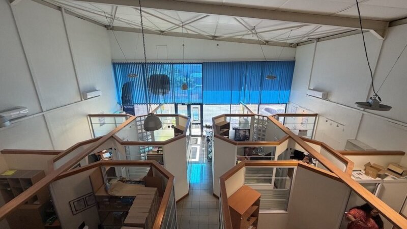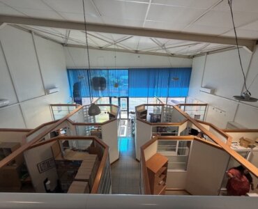 Sur la mezzanine, 3 bureaux. Le tout est facilement modulable.