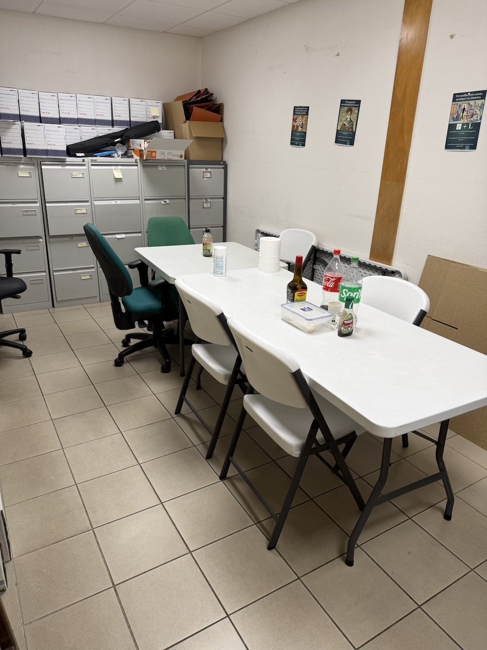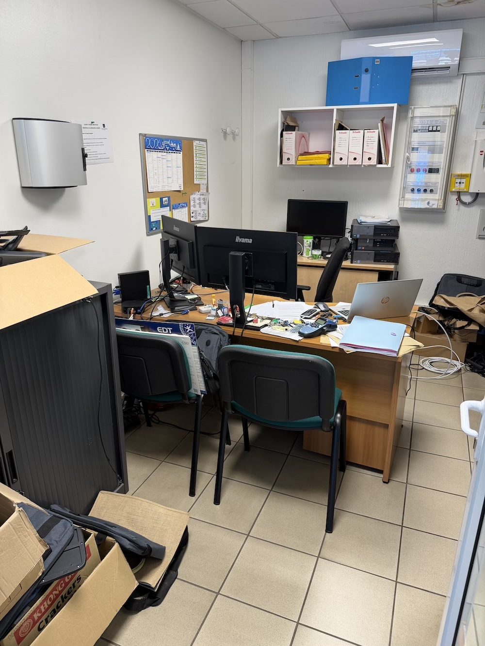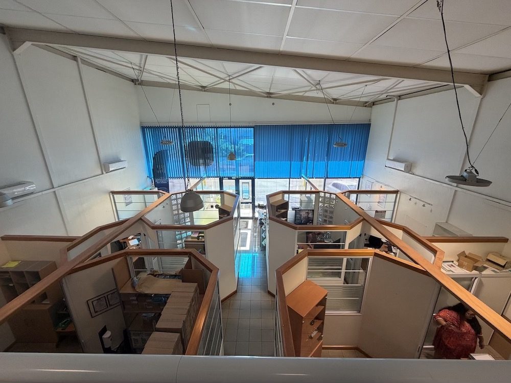 Sur la mezzanine, 3 bureaux. Le tout est facilement modulable.