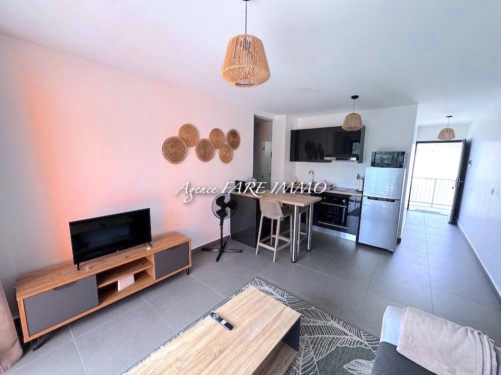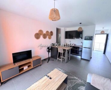 séduisant appartement F2 composé d’une entrée avec placard, un salon avec cuisine ouverte équipée et aménagée le tout donnant sur une terrasse couverte, 1 chambre avec placard, une salle d’eau avec w.c, un espace buanderie.