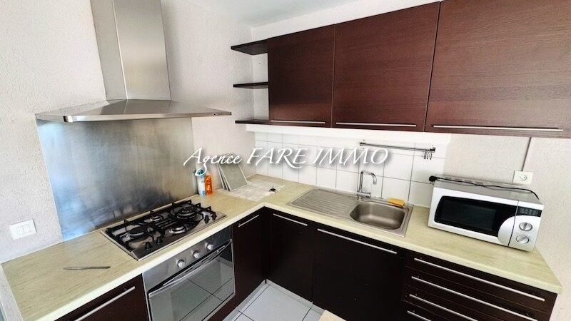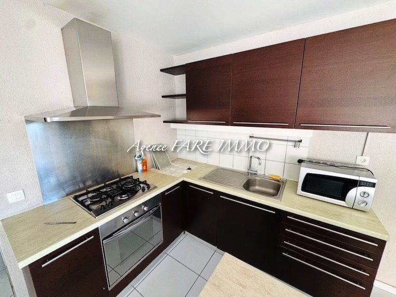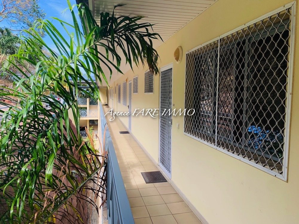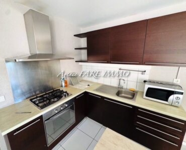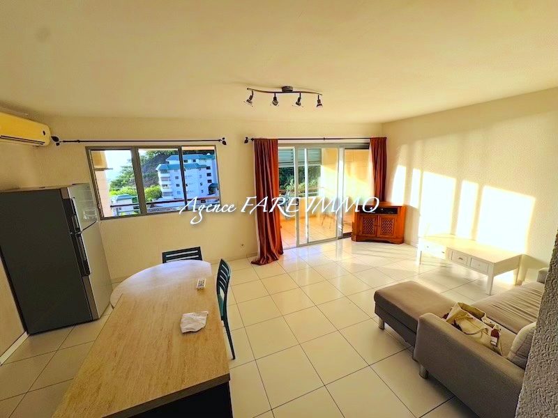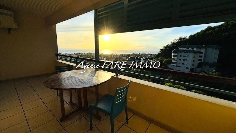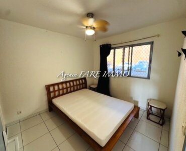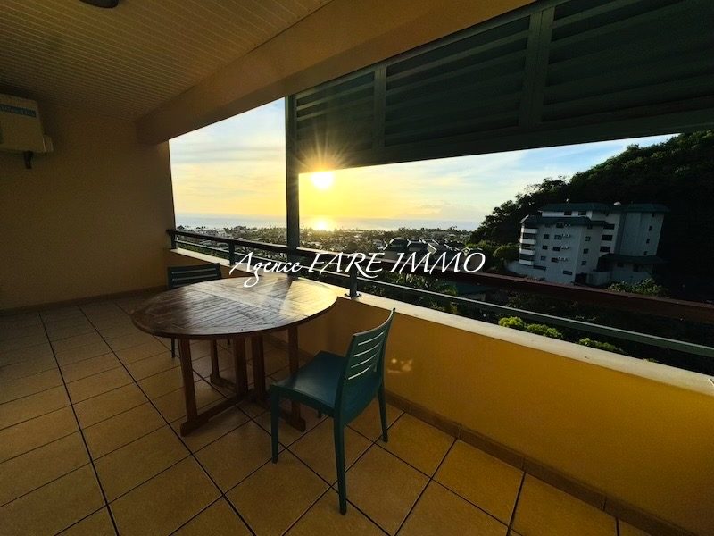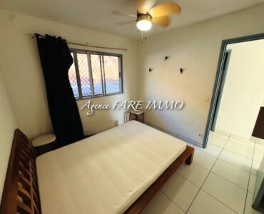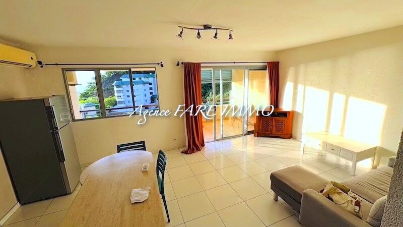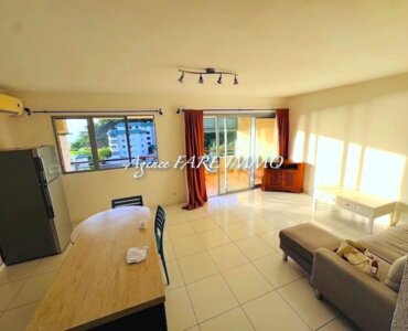appartement F2 meublé d’env 45m2 + 10m2 de terrasse couverte avec vue imprenable sur Moorea offrant 1 chambre, une jolie cuisine aménagée et équipée, salon séjour climatisé et 1 place de parking non couverte.