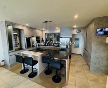 * Cuisine américaine haut de gamme aménagée et équipée ouverte sur un salon climatisé.